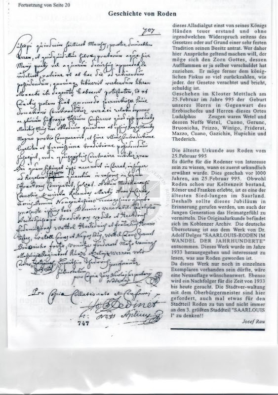 Das älteste Dokument Rodens - Schenkungsurkunde vom 25. Februar 995